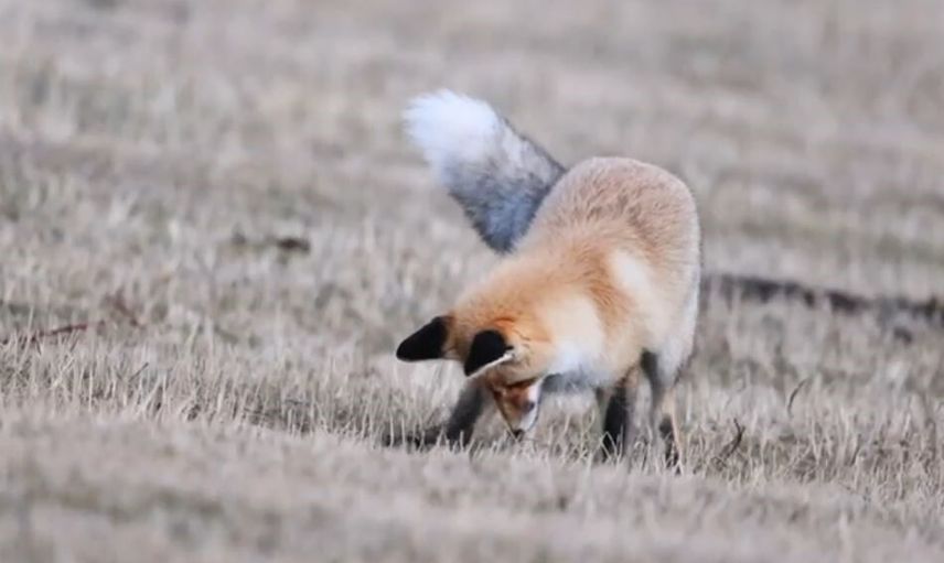 Ardahan'ın Posof ilçesinde doğada aç kalan bir kızıl tilkinın fare avlaması kameraya yansıdı.