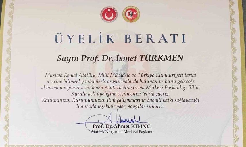 Prof. Dr. İsmet Türkmen, Atatürk Araştırma Merkezi Bilim Kurulu asıl üyesi seçildi