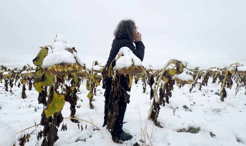 Prof. Dr. Mehmet Kavukcu'nun "Ego" performansı karlı ayçiçeği tarlasından yükseldi