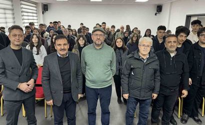 Prof. Dr. Serkan Güğercin, mezunu olduğu Karabük Demir Çelik Anadolu Lisesi'ne yıllar sonra dönerek okuldaki kariyer günü etkinliğinde öğrencilere mesleki yolculuğunu anlattı.
