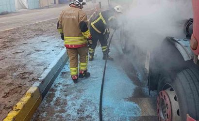 Reyhanlı ilçesi E-5 kara yolu üzerinde seyir halindeki tırın motor kısmında yangın çıktı. Olayın bildirilmesi üzerine bölgeye sevk edilen itfaiye ekipleri, alevlere hızlı müdahale ederek yangının büyümesini önledi.