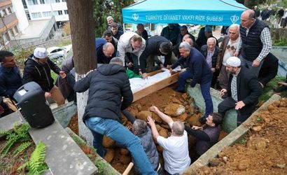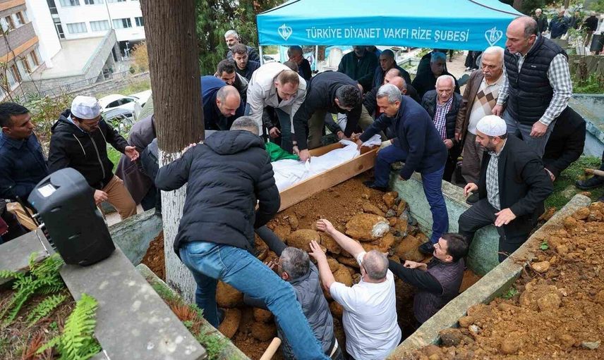 Vali Baydaş ve protokol üyelerinin omuzlarında taşınarak İslampaşa Mahallesi Rize Belediyesi Asri Mezarlığı'na getirilen cenaze, dualar eşliğinde defnedildi.