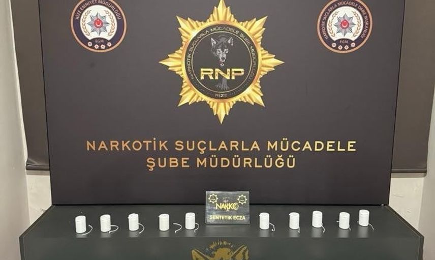 Operasyon, Rize İl Emniyet Müdürlüğü bünyesindeki Narkotik Suçlarla Mücadele Şube Müdürlüğü ekipleri tarafından yürütüldü. Yapılan aramalarda 47,06 gram sentetik kannabinoid (bonzai) hammaddesi ile 837 adet sentetik ecza hapı ele geçirildi.