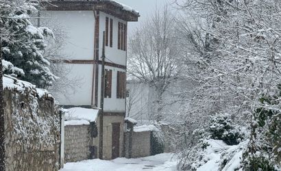 Safranbolu’da kar tarihi konakları beyaza bürüdü