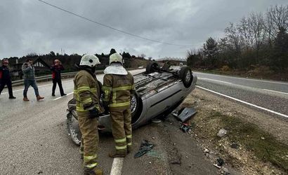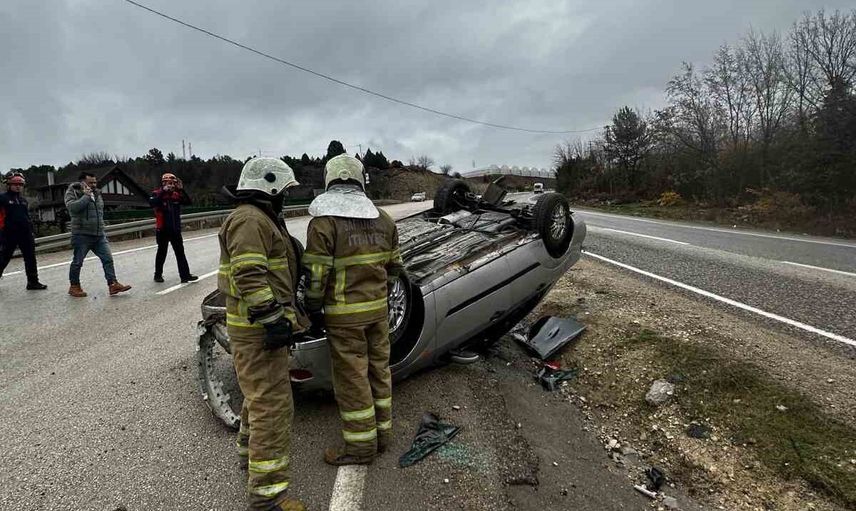 Safranbolu'da takla atan aracın sürücüsü yara almadan kurtuldu