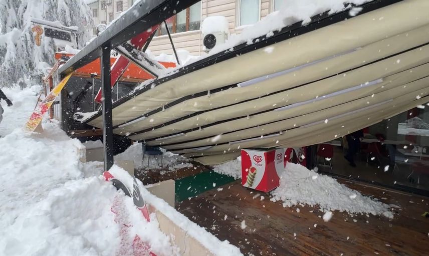 Karabük’ün Safranbolu ilçesinde etkili olan yoğun kar yağışı sonrası bazı iş yerlerinin çatı ve tenteleri biriken kar yükünü taşıyamayarak çöktü. Olay, Sadri Artunç Caddesi’nde meydana geldi.