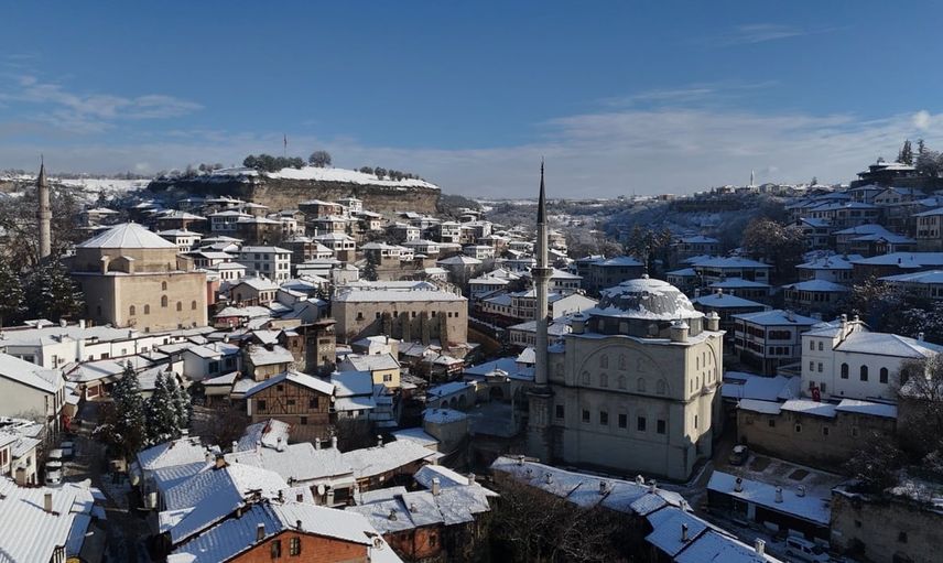 UNESCO Dünya Miras Listesinde yer alan Karabük'ün Safranbolu ilçesi, son kar yağışıyla birlikte beyaz örtüye büründü. Soğuk havaya rağmen güneşin de yüzünü göstermesiyle kent, kartpostallık sahnelere ev sahipliği yaptı.