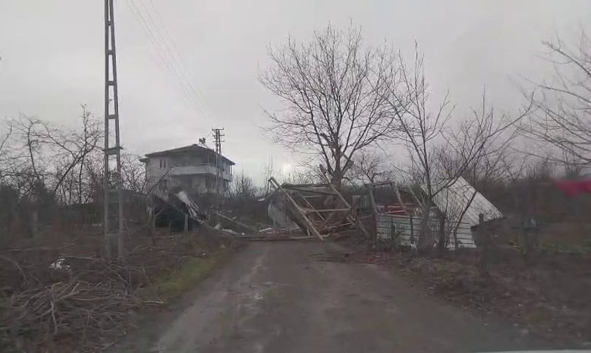 Akpınar Mahallesi'nde ise ahşap bir baraka devrilerek yolun kapanmasına sebep oldu. Meteoroloji'nin uyarılarını yaptığı rüzgar, bölgede ulaşımı aksattı.