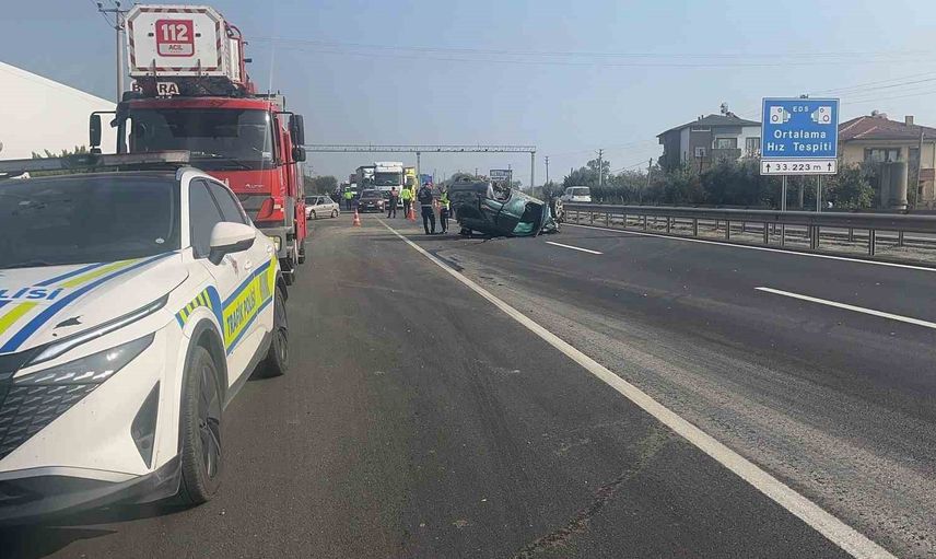 Sakarya’nın Pamukova ilçesi D-650 kara yolunda meydana gelen trafik kazasında, sürücüsünün kontrolünü kaybetmesi sonucu bir otomobil takla atarak ters döndü.