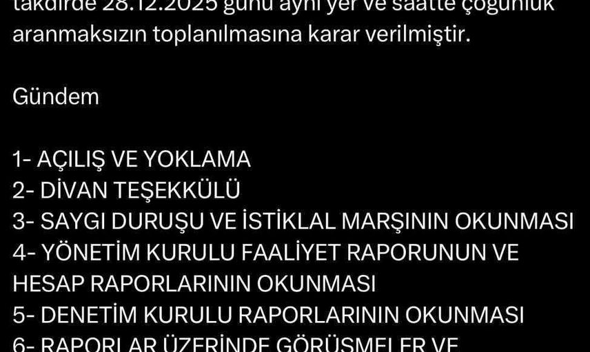 İstifanın ardından yeşil-siyahlı yönetim, olağanüstü genel kurul toplantısı kararı aldı. Kulübün sosyal medya hesabından yapılan açıklamada Sakaryaspor Kulübü’nün Olağanüstü Genel Kurul Toplantısı’nın 19.12.2025 günü saat 14.00’te Adapazarı Belediyesi Orhangazi Kültür Merkezi’nde yapılması, çoğunluk sağlanamadığı takdirde 28.12.2025 günü aynı yer ve saatte çoğunluk aranmaksızın toplanılmasına karar verildiği bildirildi.