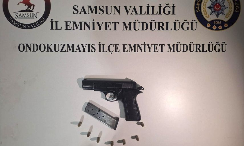R.Ç.’ye ait ikamette yapılan aramada; 1 adet 9 mm çapında tabanca, 1 adet şarjör, 7 adet 9 mm fişek ile 5607 sayılı Kanun kapsamında 1 adet elektronik sigara, 10 adet likit, 2 adet şişe tiner ve 1 adet şırınga ele geçirildi.