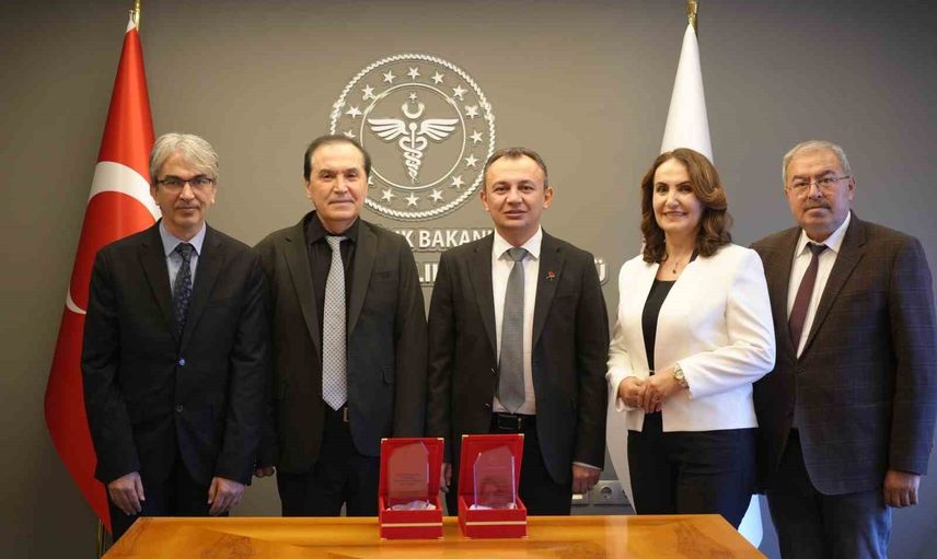 Samsun Organ Nakli Bölge Koordinasyon Merkezi Sorumlusu Dr. Mehmet Kazak, ödülü Sağlık Bakanı Prof. Dr. Kemal Memişoğlu'ndan teslim aldı.