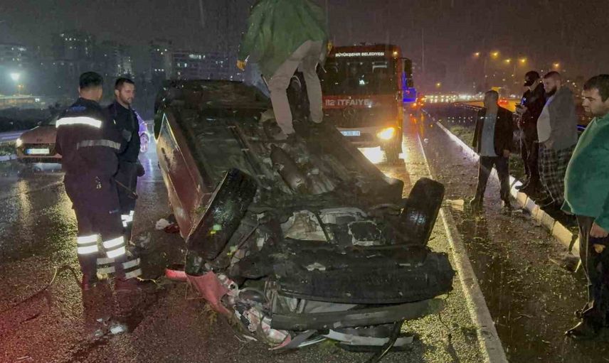 Samsun Canik'te takla atan otomobil hurdaya döndü