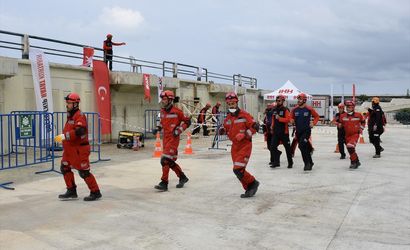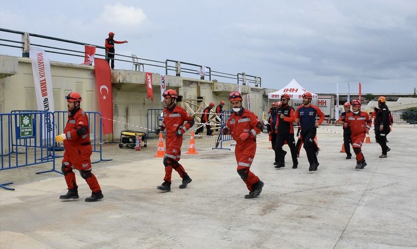 Samsun Büyükşehir Belediyesi ve İHH İnsani Yardım Vakfı Arama Kurtarma Birliği tarafından organize edilen depreme hazırlık tatbikatı, İlkadım ilçesi Mert Plajı'nda gerçekleştirildi.