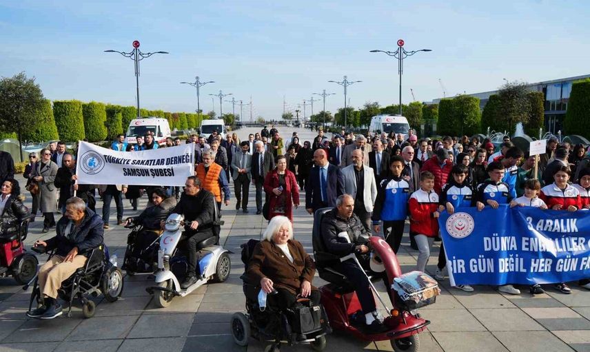 3 Aralık Dünya Engelliler Günü kapsamında Samsun Aile ve Sosyal Hizmetler İl Müdürlüğü tarafından farkındalık yürüyüşü düzenlendi. Etkinlik Tütün İskelesi'nden başlayıp Atatürk Anıtı'nda sona erdi; çelenk sunumu, saygı duruşu ve İstiklal Marşı ile tören tamamlandı.