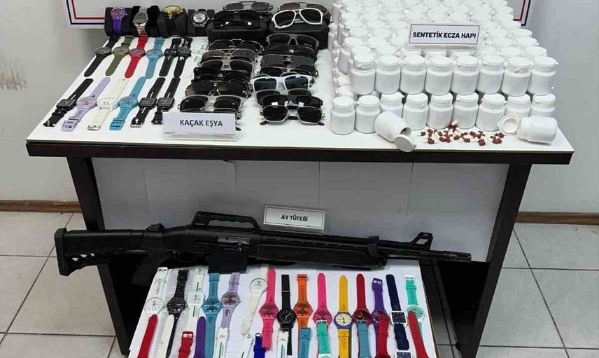 Arama sırasında ayrıca 93 adet saat ve 40 adet gözlük ele geçirildi. Olayla ilgili bir kişi gözaltına alınırken, soruşturma devam ediyor.