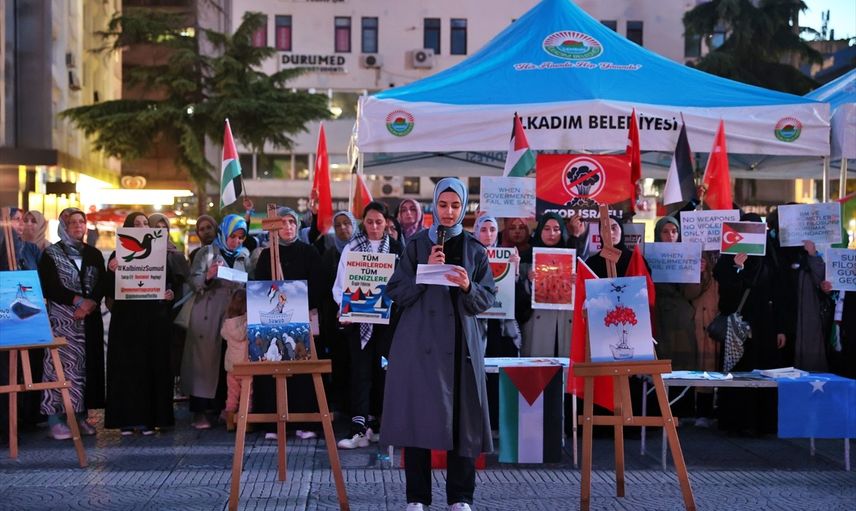 Samsun'da İsrail'in Küresel Sumud Filosu'na yönelik saldırısı protesto edildi. Programda, "Sumud'a bir dua, bir imza da sen bırak" etkinliği kapsamında katılımcılar kağıtlara dualarını yazarak imza attı.