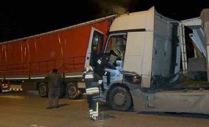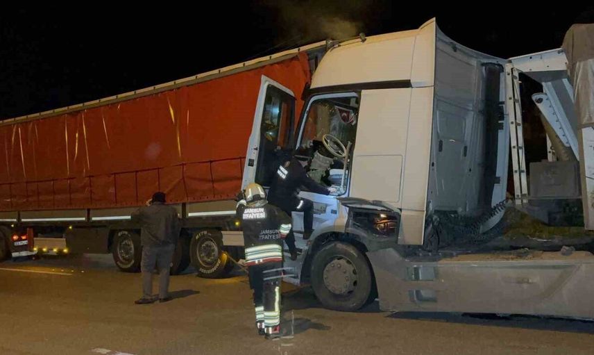 Samsun yönünde alçı taşıyan bir tır ile önündeki makarna yüklü tırın arkadan çarpışması sonucu kaza meydana geldi.