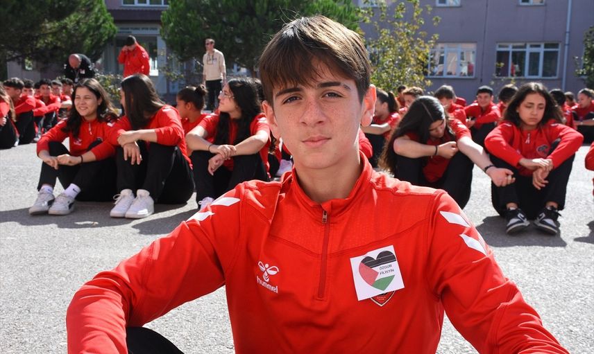 Samsun'un İlkadım ilçesinde, Gülizar-Hasan Yılmaz Spor Lisesi'nde düzenlenen etkinlikte, lise öğrencileri "Gazze" temalı bir koreografi sergiledi.