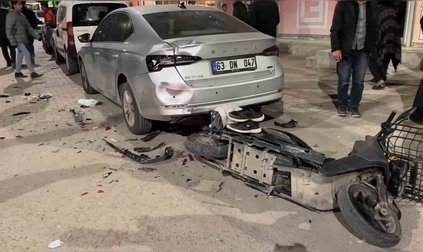 Çarpışmanın etkisiyle kontrolden çıkan motosiklet, park halindeki 63 DN 047 plakalı otomobile çarparak durdu. Kazada motosiklet sürücüsü ile arkadaşı İbrahim Halil A. yaralandı.