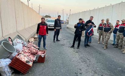Mardin-Viranşehir yol güzergahında yapılan yol denetiminde, Viranşehir Karakuzu Jandarma Karakol Komutanlığı ekipleri ile İlçe Tarım ve Orman Müdürlüğü personeli steril şartlara uygun olmayan ve belgesiz hayvansal ürün nakli yapan bir sevk aracı tespit etti.