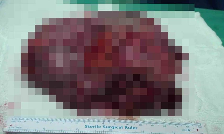 Poliklinikte yapılan detaylı tetkik ve görüntüleme çalışmaları sonrası cerrahi planlama yapıldı. Operasyonu gerçekleştiren Op. Dr. Osman Sinan Özsezen yönetimindeki ekip, planlanan müdahaleyi uygulayarak dev kisti tamamen çıkardı.