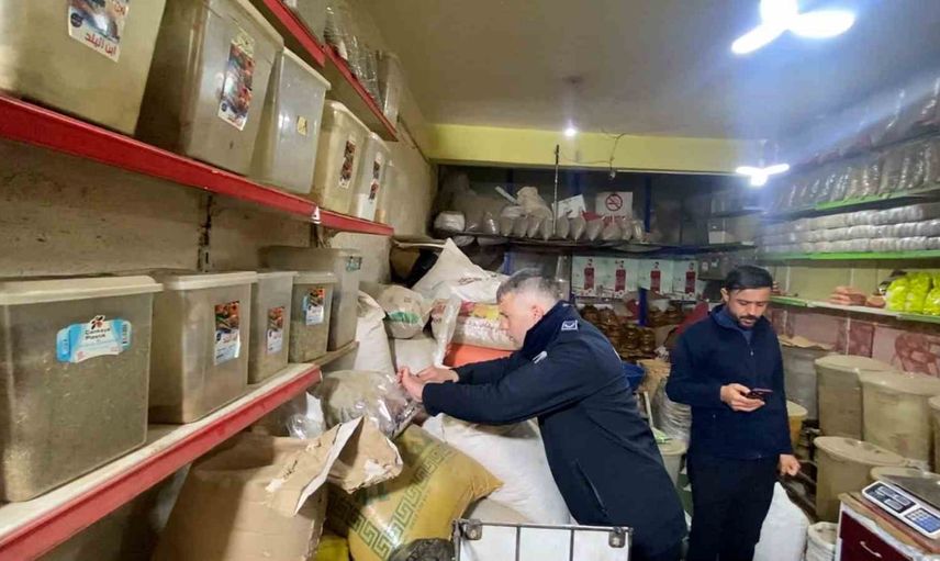 Şanlıurfa'nın Beykapısı Mahallesi'ndeki bir bakkalda gerçekleştirilen denetimlerde, satışa sunulan birçok gıda maddesinin son tüketim tarihinin geç olduğu, küf ve kurtlanma görüldüğü belirlendi.