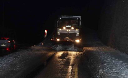 Yoğun kar yağışı sonrası yol açma ve tuzlama çalışmalarına gece gündüz devam edildi
