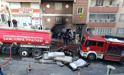 Şanlıurfa'nın Haliliye ilçesine bağlı Devteşti Mahallesi'ndeki 3 katlı bir binanın girişinde, koltuk, baza ve yatak üretimi yapılan bir atölyede yangın meydana geldi.