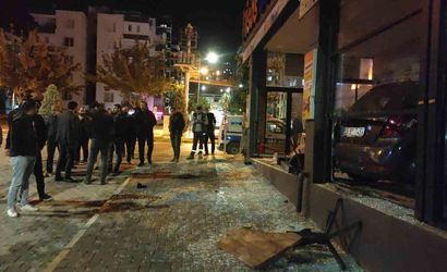 Kaza nedeniyle araçta ve iş yerinde maddi hasar oluştu.