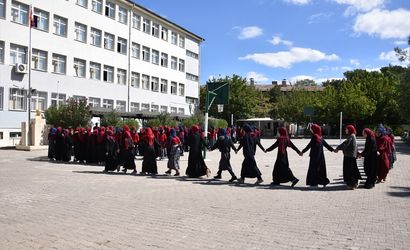 Yusuf Sami Kız Anadolu İmam Hatip Lisesi öğrencileri, okul bahçesinde bir araya gelerek Türk ve Filistin bayrakları açtılar. Yaklaşık 150 öğrenci, etkinlik sırasında mavi kurdeleler takarak dayanışmalarını gösterdi.