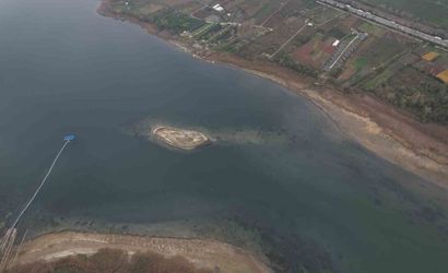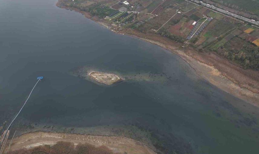 SAPANCA GÖLÜ’NDE SU SEVİYESİNİN ÇEKİLMESİYLE ORTAYA ÇIKAN ADACIKTAKİ KALINTILARIN BAZİLİKA, KİLİSE, ŞAPEL YA DA GÖZETLEME NOKTASI OLABİLECEĞİ DEĞERLENDİRİLİYOR.