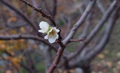 Baharlar Mahallesi'nde yaklaşık 7 yıl önce dikilen erik ağacı, geceleri hava sıcaklığının sıfırın altına düşmesine rağmen üzerinde dört-beş adet çiçek açtı ve yapraklanmaya başladı. Mahalle sakinleri bu beklenmedik durumu şaşkınlıkla izledi.