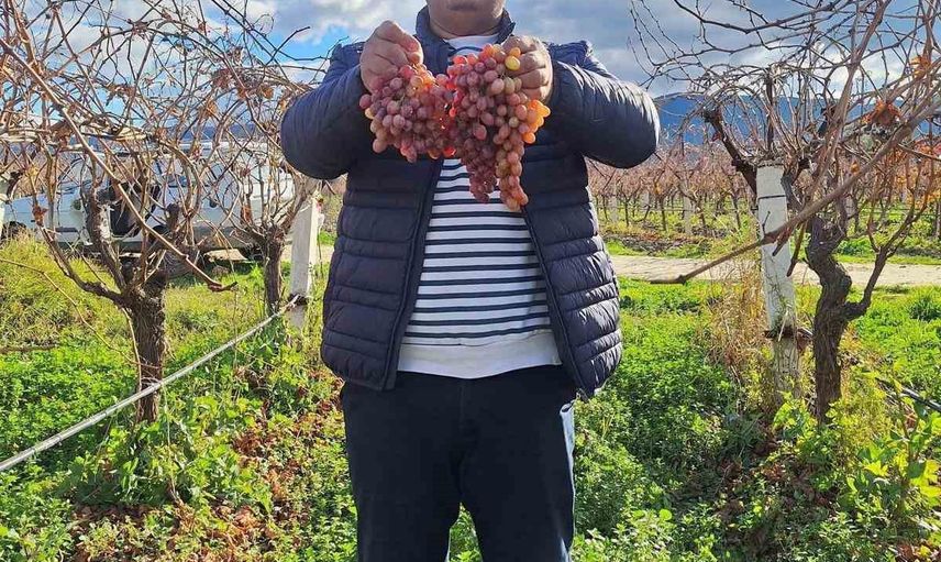 Üretici Serhat Akkaya: "Bağımdaki Crimson üzümlerinden ayırdığım asmalardan topladığım üzümleri poşetleyerek konu komşuma ve arkadaşlarıma hediye ediyorum. Kış mevsiminde bile asmadan taze üzüm toplamak mümkün."
