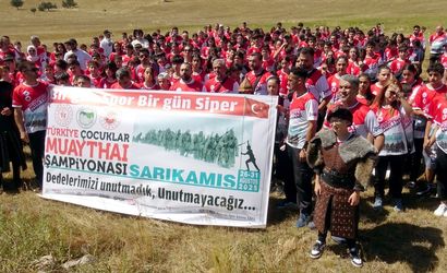 Minik ve Yıldızlar Türkiye Şampiyonası için Kars’a gelen muaythai sporcuları, Sarıkamış şehitlerine saygı yürüyüşü gerçekleştirdi. Sporcular, Allahuekber Dağları’ndaki Sarıkamış Harekatı’nın önemini anımsamak için yürüyüş düzenledi.