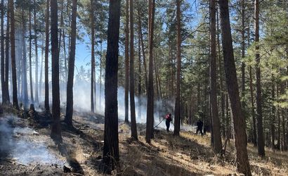 Kars'ın Sarıkamış ilçesinde ormanlık alanda çıkan örtü yangınında yaklaşık 1 hektar alan zarar gördü.