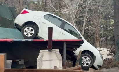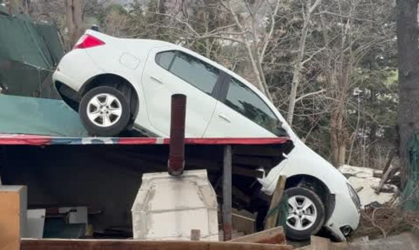 Kamelya üzerinde bulunan otomobil, çekici yardımıyla bulunduğu yerden kaldırıldı. Kazayla ilgili inceleme başlatıldı.