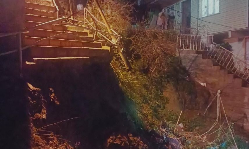 Rumeli Kavağı Mahallesi, Liman Caddesi üzerinde bir binanın bitişiğindeki merdivenin alt kısmı, kuvvetli yağışın etkisiyle çöktü. Olayın ardından çevredeki mahalle sakinleri sokağa döküldü.