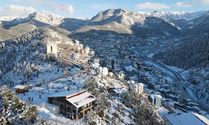 Karla örtülen evlerin çatıları, mahalle yolları, yaylalar ve ormanlık alanlar, dron kamerasıyla havadan kaydedildi. Beyazın doğayla bütünleştiği panoramalar, görüntüleri izleyenlere görsel bir şölen sundu.