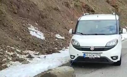 TOKAT’TA SEYİR HALİNDEYKEN YOLA DÜŞEN KAYA PARÇASI, VATANDAŞLARI DİKKATİ VE DUYARLI DAVRANIŞI SAYESİNDE TEHLİKE OLUŞTURMADAN YOL KENARINA ÇEKİLDİ.