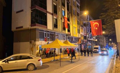 Merzifon ilçe merkezinde yaşayan ailelerin evleri ve lojmanlara büyük bayraklar asılarak taziye hazırlıkları gerçekleştirildi.