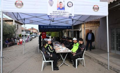 Manisa'nın Alaşehir ilçesinde geçen hafta görevi başında trafik kazasında şehit olan 34 yaşındaki Polis Memuru Ali Barut, Salihli'nin Kapancı Mahallesi'nde düzenlenen lokma hayrıyla yad edildi.