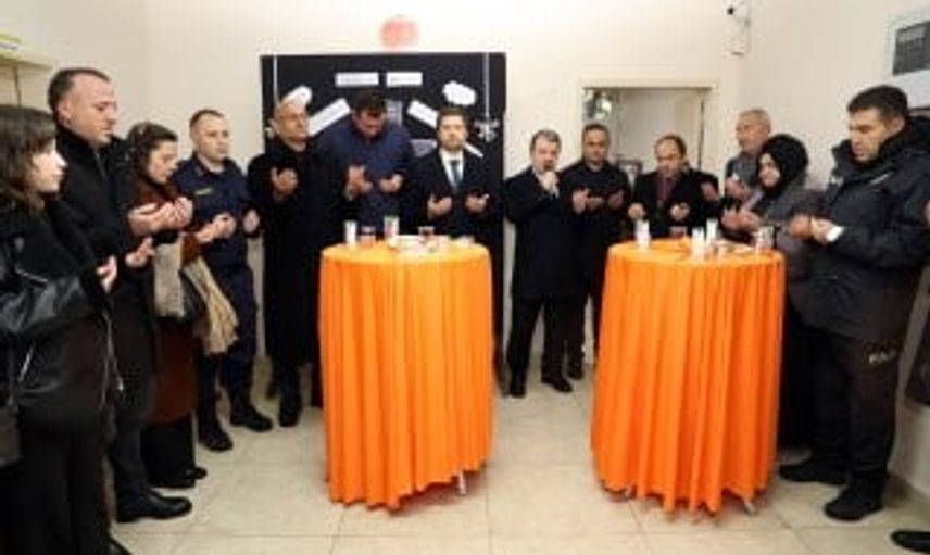 Olumsuz hava koşulları nedeniyle tören okul binasında devam etti. İlçe Müftüsü Dr. Abdullah Çobanoğlu dua ederken, soğukta üşüdüğü gözlenen ve aynı zamanda emekli polis memuru olan şehit babası Polat Baş için İlçe Emniyet Müdürü Yılmaz Demirel tarafından bir emniyet parkası hediye edildi.