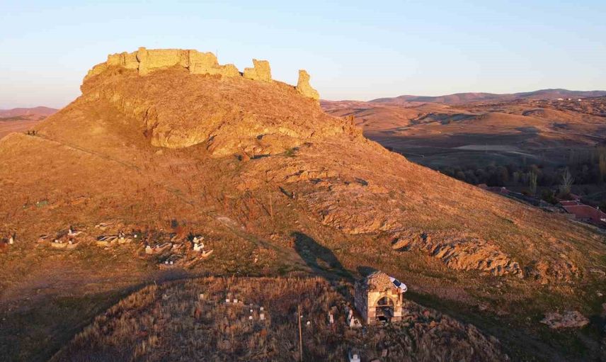 YOZGAT'IN AKDAĞMADENİ İLÇESİNE BAĞLI MUŞALİKALESİ (BEHRAMŞAH KALESİ), DRON KAMERASIYLA HAVADAN GÖRÜNTÜLENDİ. TARİHİ 13'ÜNCÜ YÜZYILA KADAR UZANAN KALE İLE ÇEVRESİNDE BULUNAN ALİ ÇELEBİ VE MAHMUT ÇELEBİ TÜRBELERİ, YÜZYILLARDIR BÖLGENİN TARİHİNE IŞIK TUTUYOR.