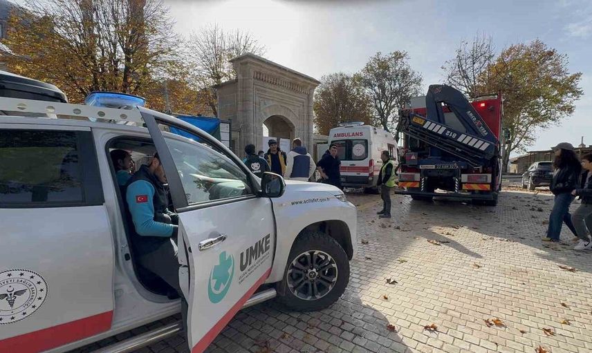 Edirne'de Selimiye Camiinde yürütülen restorasyon çalışmaları sırasında bir işçi yüksekten düştü. Çalışma esnasında dengesini kaybeden N.A. isimli işçi yaralanarak olay yerinde ilk müdahaleye alındı.