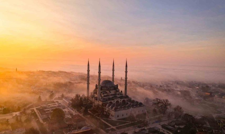 Sabahın erken saatlerinde Edirne kent merkezini kaplayan sis, tarihi dokuyu farklı bir atmosfere taşıdı. Gün doğumunun ilk ışıkları sisle bütünleşerek Selimiye Camiinin kubbe ve minarelerinde kartpostalı anımsatan görüntüler oluşturdu.