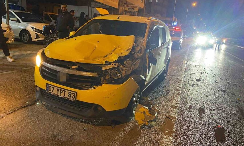 Sürücüsü henüz öğrenilemeyen 07 YPT 83 plakalı ticari taksi, aynı yönde ilerleyen Okan B. idaresindeki 07 EAB 65 plakalı kamyonetle çarpıştı. Çarpışmanın etkisiyle kamyonet yan yatarak refüjdeki demir korkuluklara çarptı.