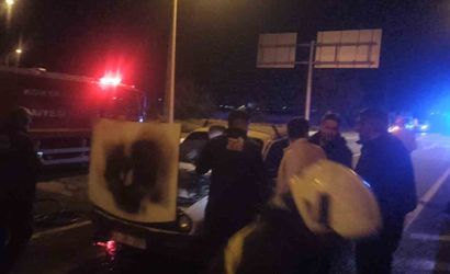 Seydişehir'de kırmızı ışıkta duran otomobilde yangın