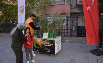Siirt Orman İşletme Müdürlüğü ekiplerince Güres Caddesi üzerinde, "Şahidimiz Toprak İmzamız Fidan Sevdamız Yeşil Vatan" sloganıyla bir fidan sahiplenme noktası kuruldu.