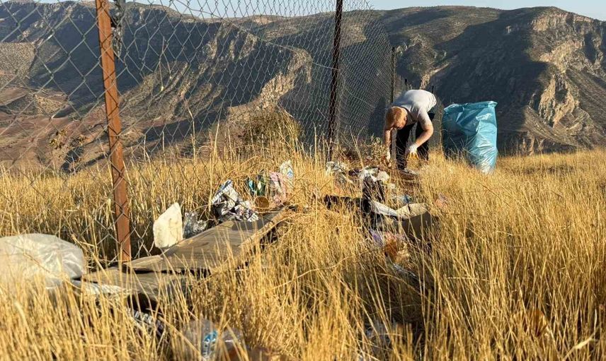 Katılımcılar bir günde en az 10 poşet çöp topladıklarını belirtiyor. Çalışmaların son durağı ise Botan Vadisi manzaralı paraşüt tepe oldu; buradaki temizlik mesaisi dron görüntüleriyle kayda alındı.